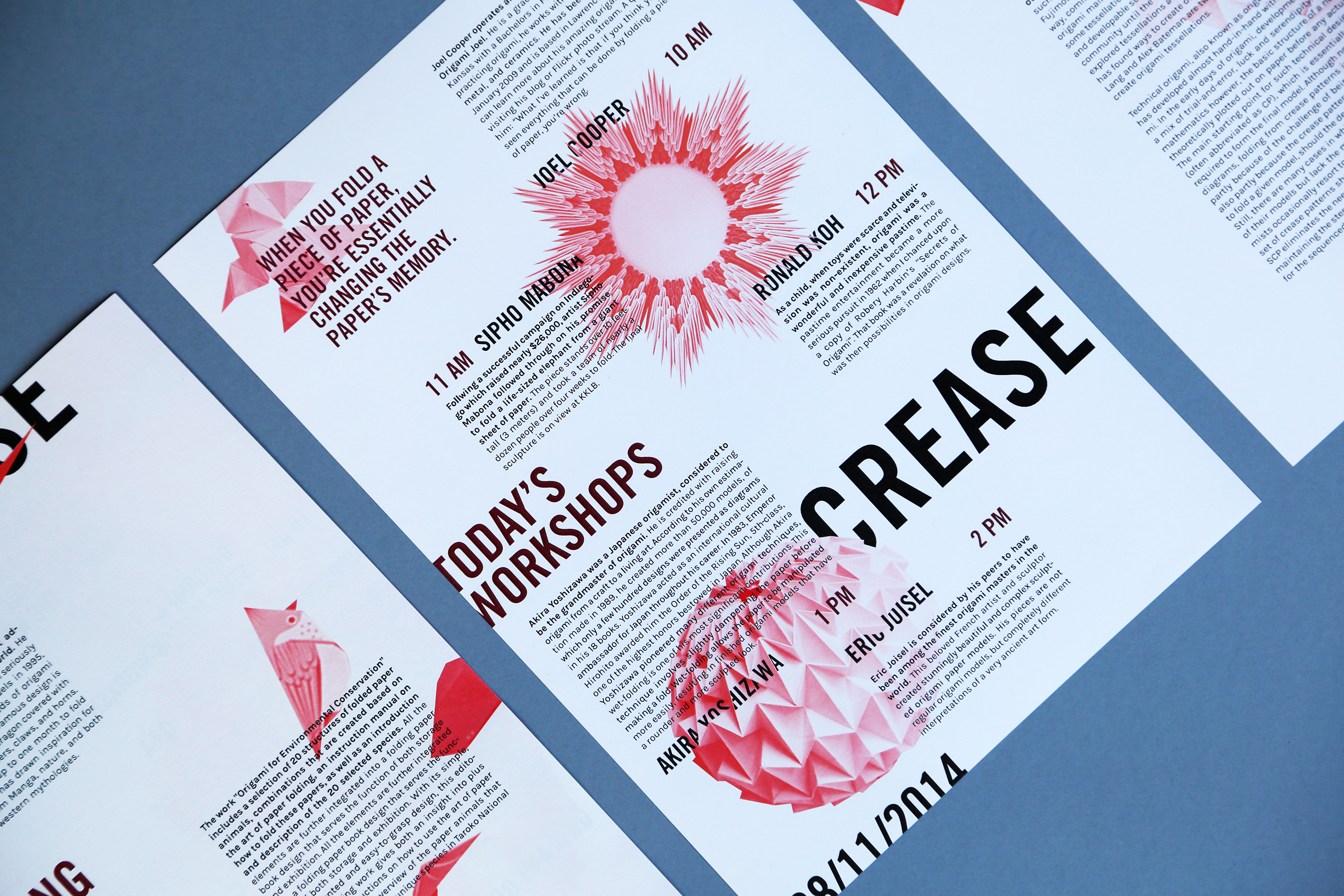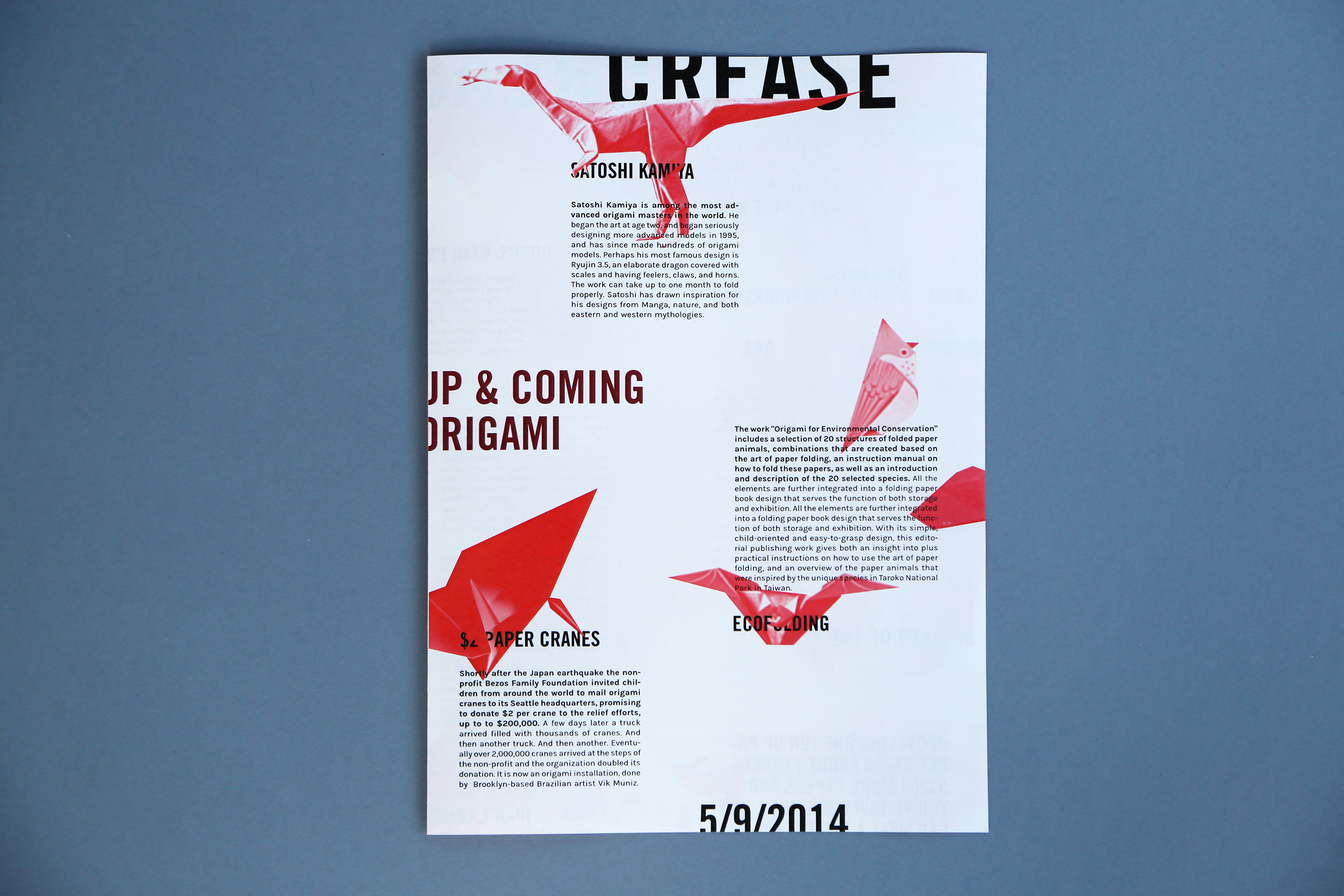 The typography hides behind different images to mimic the different folds of paper when you’re making origami—some folds are exposed, while others are hidden, just like the treatment of type.